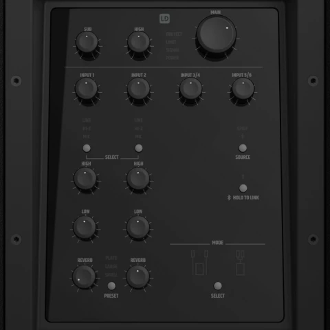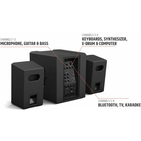 активная акустическая система 2.1, интегрированный 6-канальный миксер, мощность: 2x 265 Вт + 500 Вт (сабвуфер), Bluetooth