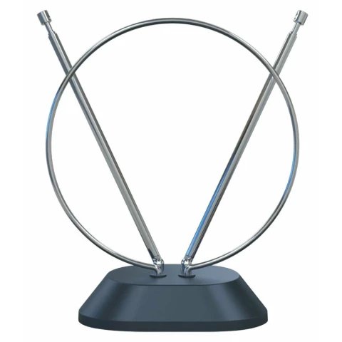 телевизионная антенна, комнатная, пассивная, коэффициент усиления: 3 дБ, диапазон частот: VHF:87.5-230 МГц; UHF:470-862 МГц