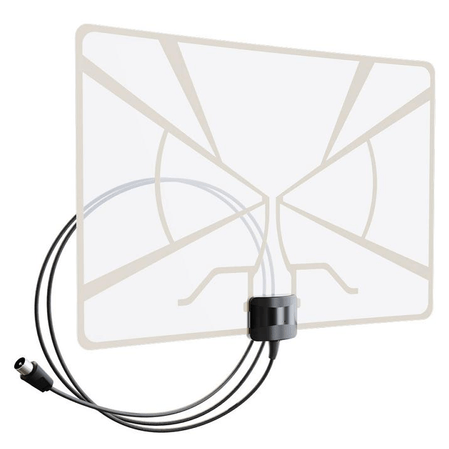 комнатная TB-антенна, с усилителем, прием VHF / UHF, прием DVB-T/DVB-T2, усиление сигнала VHF 33 дБ, усиление сигнала UHF 33 дБ, питание: от антенного кабеля