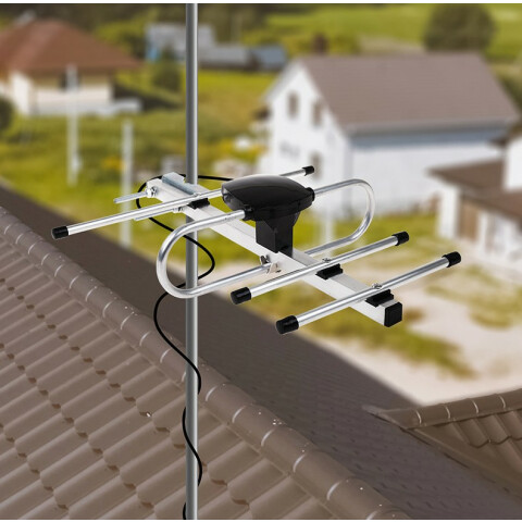телевизионная антенна, уличная, активная, стандарт: DVB-T/DVB-T2, рабочий диапазон: VHF/UHF, диапазон частот: 470-862 МГц, коэф. усиления: 27 дБ, сопротивление: 75 Ом