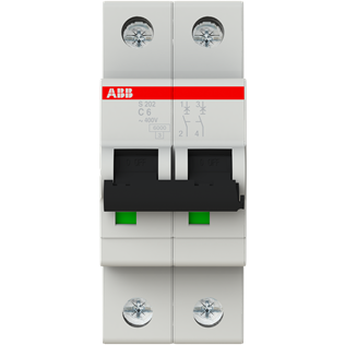 автоматический выключатель на DIN-рейку, 2-полюсный, напряжение: 400 В, ток: 6 A, тип расцепления: C, отключающая способность: 6 kA, IP20