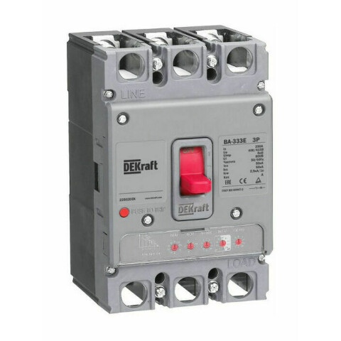Бренд: DEKraftавтоматический выключатель на монтажную панель, 3-полюсный, напряжение: 415 В, ток: 250 A, отключающая способность: 50 kA, IP20