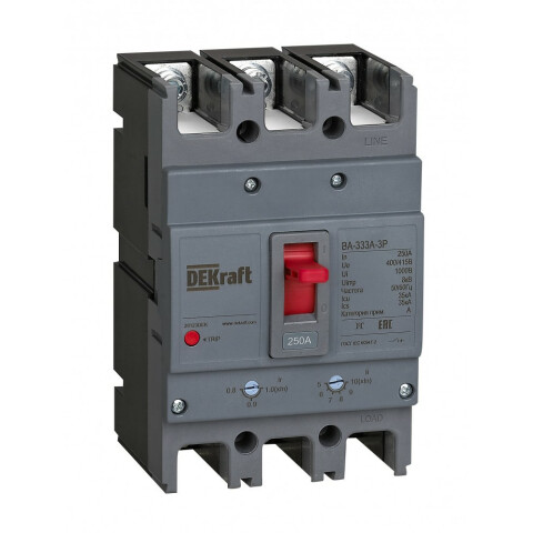 Бренд: DEKraftавтоматический выключатель на монтажную панель, 3-полюсный, напряжение: 415 В, ток: 250 A, отключающая способность: 35 kA, IP20