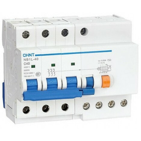 4-полюсной выключатель, 400 В, 16 A, AC, 30 мА, 6 kA