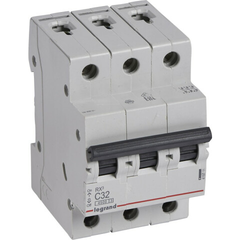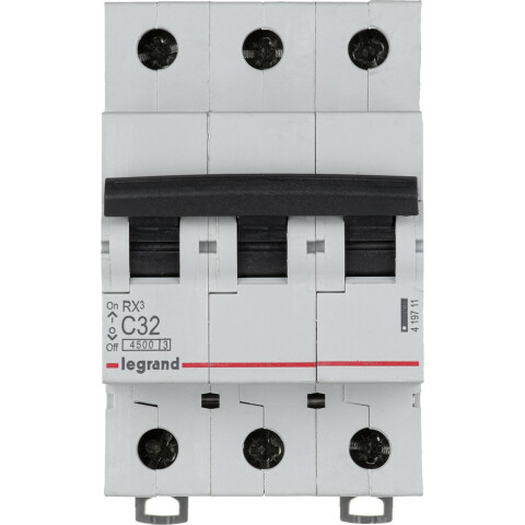 автоматический выключатель на DIN-рейку, 3-полюсный, напряжение: 400 В, ток: 32 A, тип расцепления: C, отключающая способность: 4.5 kA, IP20