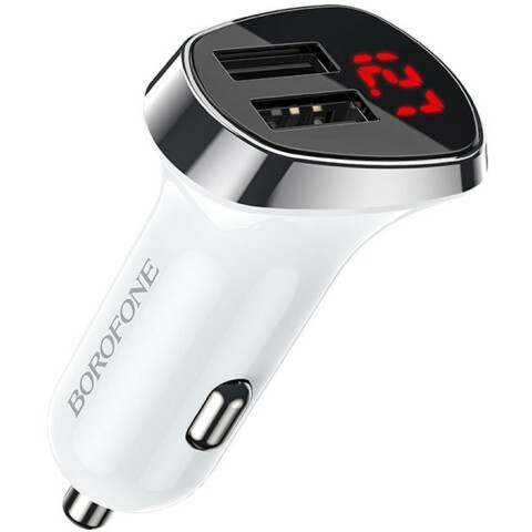 Автомобильное зарядное устройство Borofone BZ15 Auspicious White + Lightning Cable