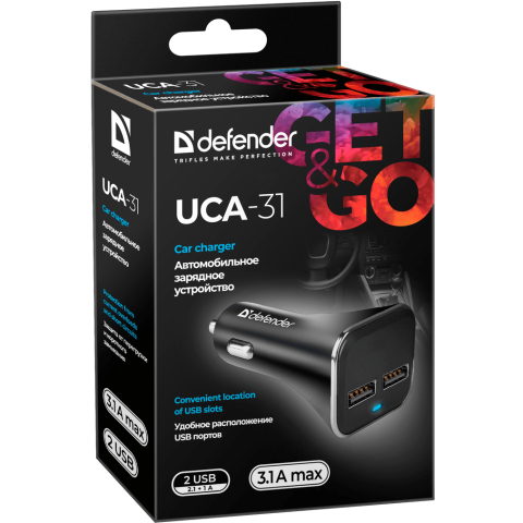 автомобильное зарядное устройство, сила тока 2.1 A, 2x USB