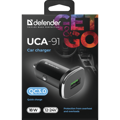 автомобильное зарядное устройство, мощность 18 Вт, сила тока 3 A, 1x USB, быстрая зарядка