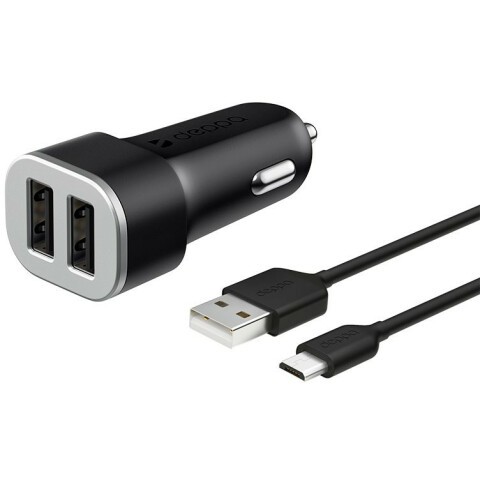 автомобильное зарядное устройство, сила тока 2.4 A, 2x USB, кабель microUSB
