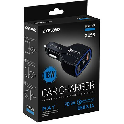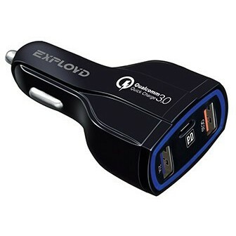 Бренд: Exploydавтомобильное зарядное устройство, мощность 18 Вт, сила тока 3 A, 2x USB, 1x USB Type-C, быстрая зарядка