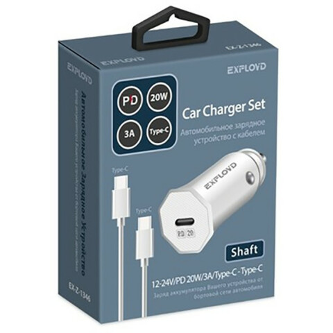 Бренд: Exploydавтомобильное зарядное устройство, мощность 20 Вт, сила тока 3 A, 1x USB Type-C, быстрая зарядка, кабель USB Type-C