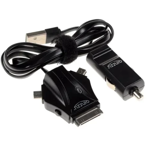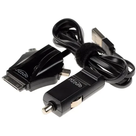 автомобильное зарядное устройство, сила тока 2.1 A, 1x USB, кабель microUSB, Apple 30-pin, miniUSB