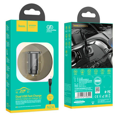 Автомобильное зарядное устройство HOCO NZ4 Wise Black + Lightning Cable