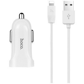 Автомобильное зарядное устройство HOCO Z2A White + Lightning Cable