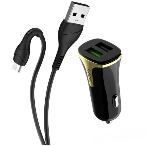 Автомобильное зарядное устройство HOCO Z31 Universe Black + MicroUSB Cable