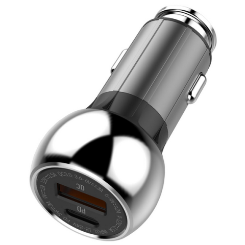 автомобильное зарядное устройство, мощность 36 Вт, сила тока 3 A, 1x USB, 1x USB Type-C, быстрая зарядка, кабель USB Type-C