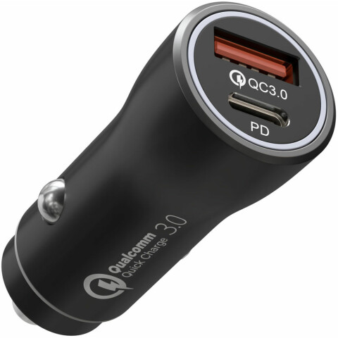 автомобильное зарядное устройство, сила тока 2.4 A, 1x USB, 1x USB Type-C, быстрая зарядка