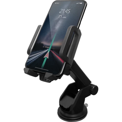 автомобильный держатель для смартфона и навигатора, поворачивается на 360°, регулируемая по длине ножка, мягкие боковые зажимы с регулируемым расстоянием 55-95мм, крепление на стекло или приборную панель