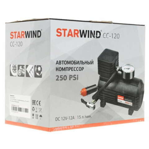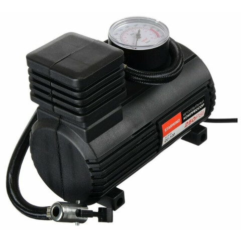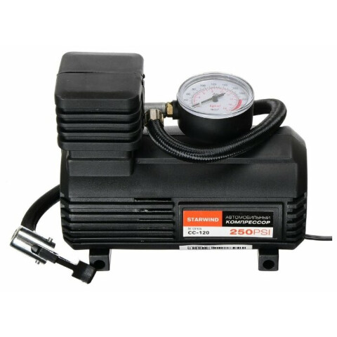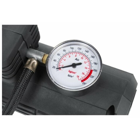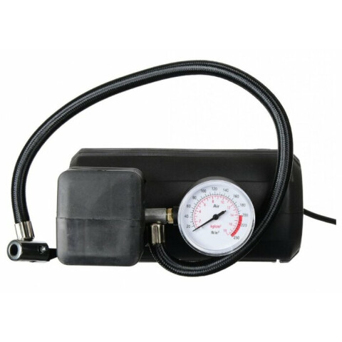 тип: поршневой, производительность на входе 15 л/мин, максимальное давление 17 атм, тип подключения: в гнездо прикуривателя, напряжение: 12 В, длина воздушного шланга 0.45 м, длина кабеля питания 3 м