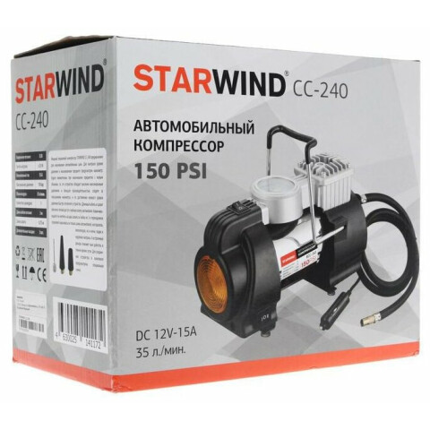 тип: поршневой, производительность на входе 35 л/мин, максимальное давление 10.2 атм, тип подключения: в гнездо прикуривателя, напряжение: 12 В, длина воздушного шланга 0.75 м, длина кабеля питания 3 м