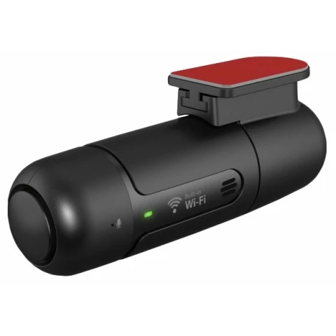 угол обзора 160°, без экрана, режим циклической записи видео 1920x1080 при 30 к/с, режим фотосъемки, встроенный микрофон, датчик удара (G-сенсор), поддержка карт памяти microSD, размеры: 90х31х35 мм, вес: 42 г