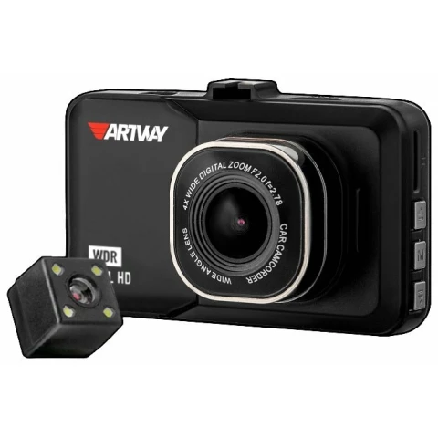 Бренд: Artwayвидеорегистратор с 2 камерами, запись видео 1920x1080 при 25 к/с, угол обзора 120°, с экраном 3", датчик удара (G-сенсор), работа от аккумулятора, подключение к телевизору по HDMI, поддержка карт памяти microSD (microSDHC), встроенный микрофон
