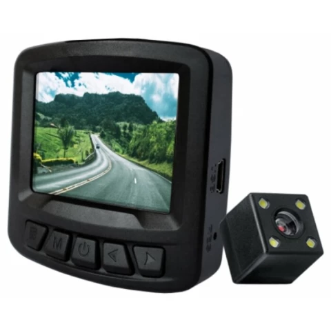 угол обзора 170°, с экраном 2", режим циклической записи видео 1920x1080, встроенный микрофон, датчик удара (G-сенсор), GPS, работа от аккумулятора, поддержка карт памяти microSD (microSDHC)