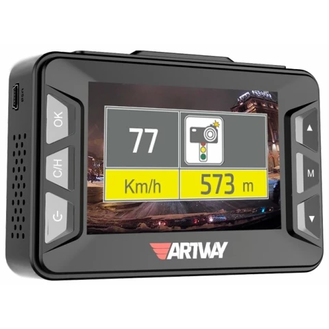Бренд: Artwayугол обзора 170°, с экраном 2.4", режим циклической или непрерывной записи видео 1920x1080 при 30 к/с, режим фотосъемки, встроенный микрофон, датчик удара (G-сенсор), GPS, работа от аккумулятора, поддержка карт памяти microSD