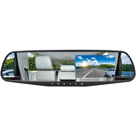 с экраном, зеркало заднего вида, запись: 1920x1080 30 к/с, угол обзора: 150°, экран: 4.5, датчик движения, датчик удара, встроенный микрофон, встроенный динамик