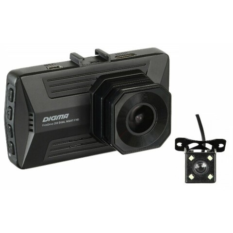 Бренд: Digmaс выносной камерой, угол обзора 170°, с экраном 3" 640х360, режим циклической записи видео 1920x1080 при 30 к/с, режим фотосъемки, встроенный микрофон, датчик удара (G-сенсор), работа от аккумулятора, поддержка карт памяти microSD
