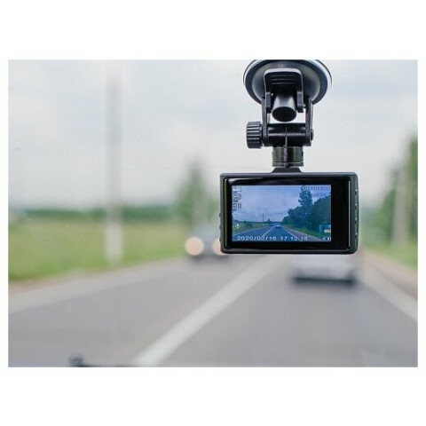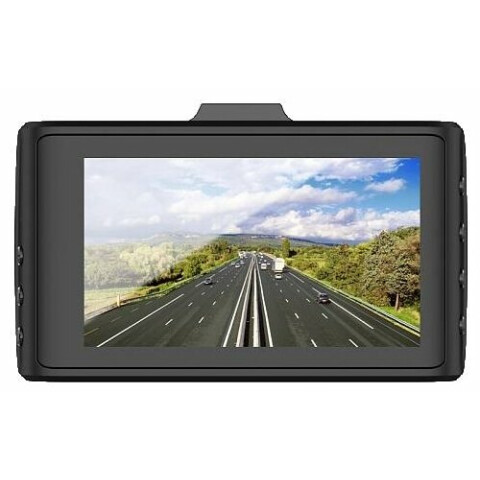 угол обзора 140°, экран 3" с разрешением 320x240, разрешение видео 1920x1080, циклическая запись, поддержка карт памяти microSDHC, встроенный микрофон, датчик удара (G-сенсор), размеры 90х40х55 мм