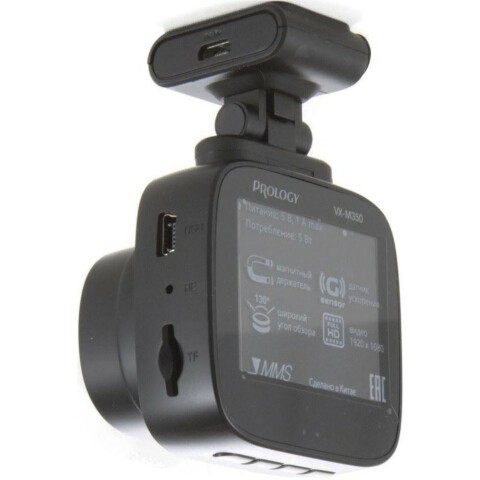 угол обзора 130°, с экраном 2", режим циклической записи видео 1920x1080 при 30 к/с, датчик удара (G-сенсор), поддержка карт памяти microSD