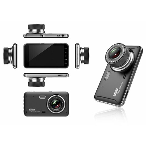 с выносной камерой, экран 4", разрешение видео 1920x1080 при 30 к/с, циклическая запись, работа от аккумулятора, поддержка карт памяти microSD, режим фотосъемки, датчик удара (G-сенсор), рабочая температура -20° - +60°, вес 80 г