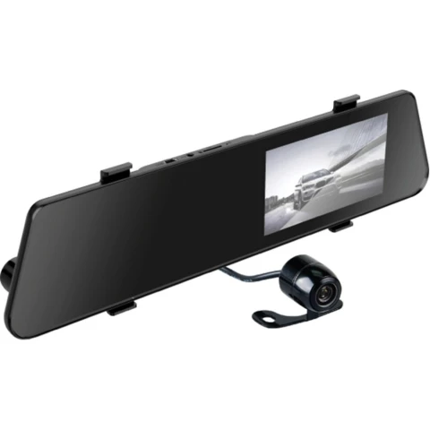 с экраном, зеркало заднего вида, с выносной камерой, запись: 1920x1080 30 к/с, угол обзора: 140°, экран: 5, датчик движения, датчик удара, встроенный микрофон
