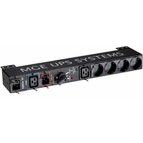 механический байпас HotSwap MBP IEC, необходим для манипуляций с ИБП (3кВА макс.) без откл. нагрузки (вся нагрузка переводится на байпас): ремонт и замена ИБП, обслуживание, замена батарей; 4x Schuko + IEC 16A (C19)