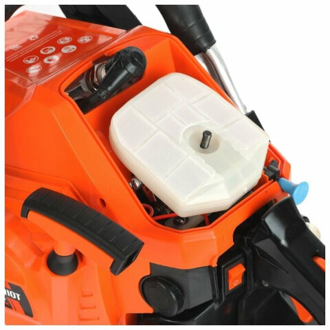 бензопила, мощность 2 Вт, длина шины 35 см, шаг цепи 3/8 дюйма, плавный пуск, торможение двигателя, антивибрация, натяжение цепи без инструмента
