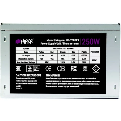 Бренд: HIPERмощность 250 Вт, SFX12V, пассивный PFC, вентилятор 80 мм