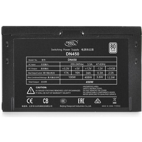 Бренд: DeepCoolмощность 450 Вт, ATX12V 2.31, активный PFC, вентилятор 120 мм, cертификат 80 PLUS Certified