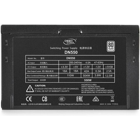 Бренд: DeepCoolмощность 550 Вт, ATX12V 2.31, активный PFC, вентилятор 120 мм, cертификат 80 PLUS Certified