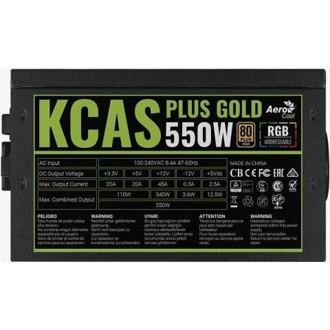 Блок питания 550W AeroCool KCAS PLUS GOLD 550W