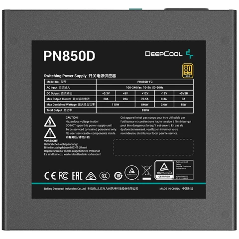 мощность 850 Вт, ATX12V 3.1, активный PFC, вентилятор 120 мм, cертификат 80 PLUS Gold