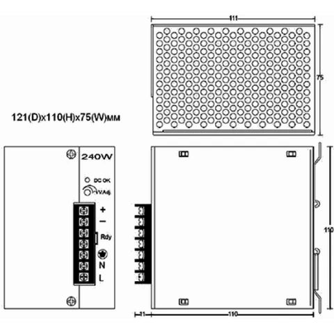 блок питания, выход 240 Вт, 48 В, 20 А, -40...70°C, на DIN-рейку, стену