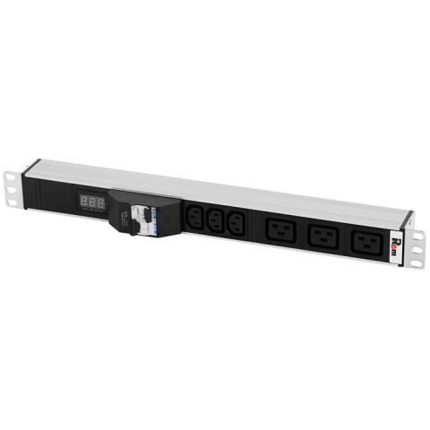 блок розеток Rem-32 с автоматом, и амперметром, 3 IEC 60320 C13, 3 IEC 60320 C19, 32А, алюминий, 19"