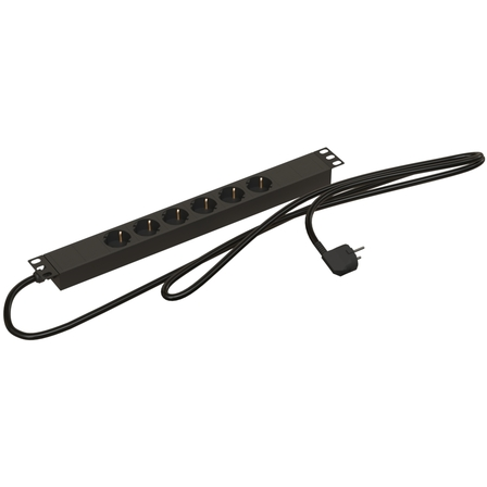 горизонтальный блок розеток, для 19" стойки, ток: 16 А, выходные розетки: 6xSchuko, вход: Schuko