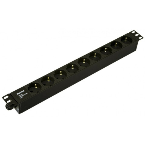 блок розеток 19", горизонтальный, 250В, 16А, 9 розеток Schuko, без кабеля питания, клеммная колодка
