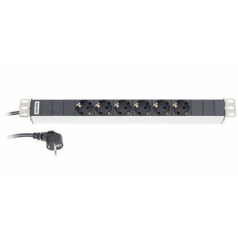 блок розеток для 19" шкафов, горизонтальный, 6 универсальных розеток, 16A, шнур 2.5м