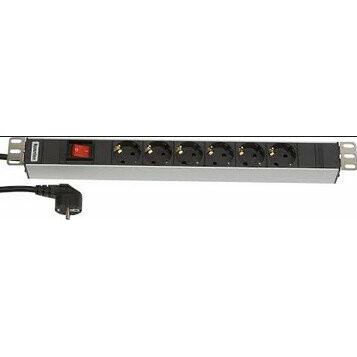 блок розеток для 19" шкафов, горизонтальный, 6 универсальных розеток, выключатель с подсветкой, 16A, шнур 2.5м