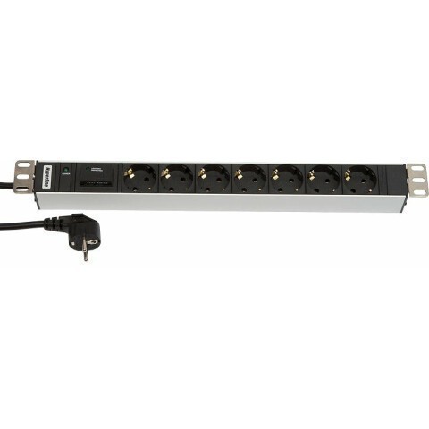 блок розеток для 19" шкафов, горизонтальный, 7 универсальных розеток, максимальная сила тока: 16A, индикатор, 2.5м