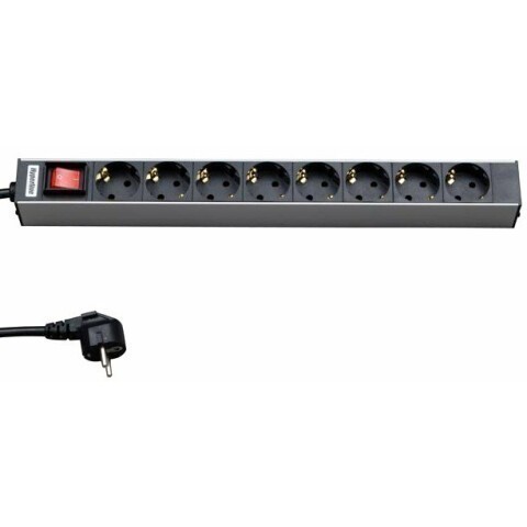 блок розеток для 19" шкафов, горизонтальный, 8 универсальных розеток, максимальная сила тока: 16A, выключатель, шнур 2.5