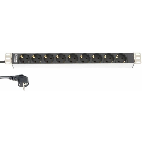блок розеток для 19 шкафов, горизонтальный, 9 розеток, максимальная нагрузка: 16 A, шнур 2.5м